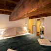 Tramite una scala si accede ad un soppalco dove è presente un altro letto matrimoniale e una stanza adibita a cabina armadio, comoda per riporre i propri oggetti o vestiti.