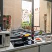 Il loft presenta una doppia porta di ingresso, aperta la prima troviamo lo spazio esterno corredato da piante e fiori, superato il quale si trova la porta di accesso all'immobile. Entrando troviamo subito la cucina a vista completamente attrezzata e una sala comprensiva di zona pranzo, con un divano (all'occorrenza trasformabile in letto), una Smart TV con Netflix e Amazon Prime, un bellissimo tavolo di vetro e una zona dedicata alla macchinetta del caffè Nespresso e un bollitore, con disponibilità di bustine da the, capsule e zucchero.