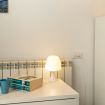 L'open space prosegue con un'altra stanza con un letto matrimoniale, un scrivania utile per chi avesse necessità di lavorare e un armadio, c'è inoltre la possibilità di separare lo spazio tramite una grande porta scorrevole, per chi volesse più privacy.